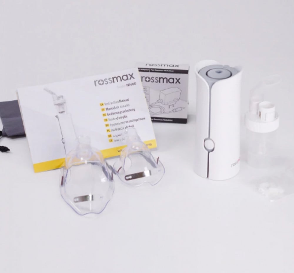 روزماكس تقدم جهاز استنشاق الرذاذ/البخار روزماكس المحمول يدويا NH60 المزود بتقنية تعديل الصمام حيث معدل استنشاق يمكن التحكم فيه بحجم جزيئات ثابت.